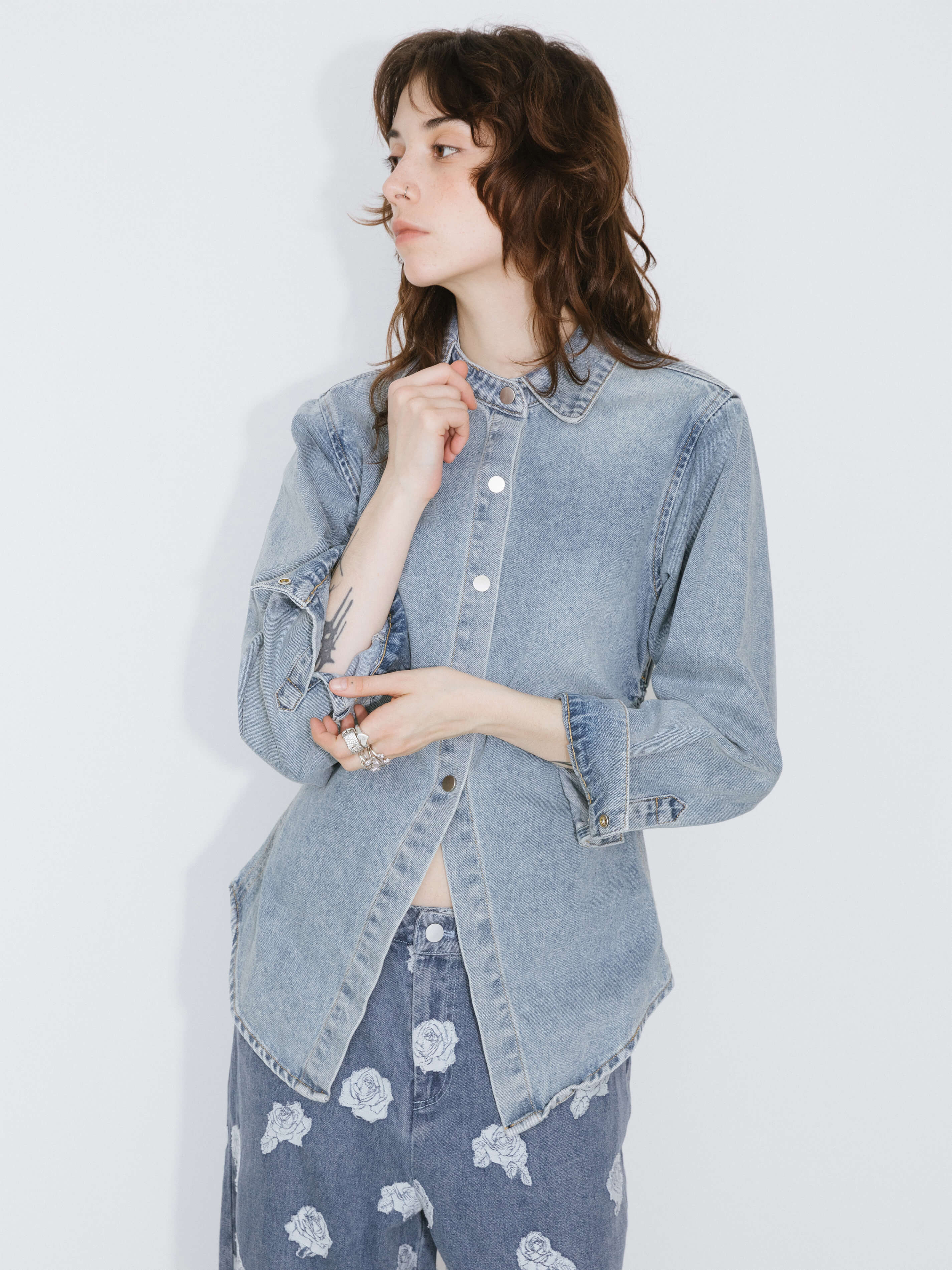 The long denim shirt in steel blue is crafted from high-quality blue denim, offering both style and comfort. Featuring long sleeves and an oversized fit, it creates a relaxed, laid-back look. The button-down design is paired with an asymmetric shirt collar, adding a modern and edgy twist to the classic silhouette. A waisted design at the waist gives the shirt a more structured, flattering shape, while maintaining its easygoing, loose fit. Combining both comfort and style, this shirt is perfect for those seeking a stylish denim shirt with a contemporary touch. The fabric composition is 100% Cotton. Model wears size S, which is UK size 8. Product Code: COBCB5015