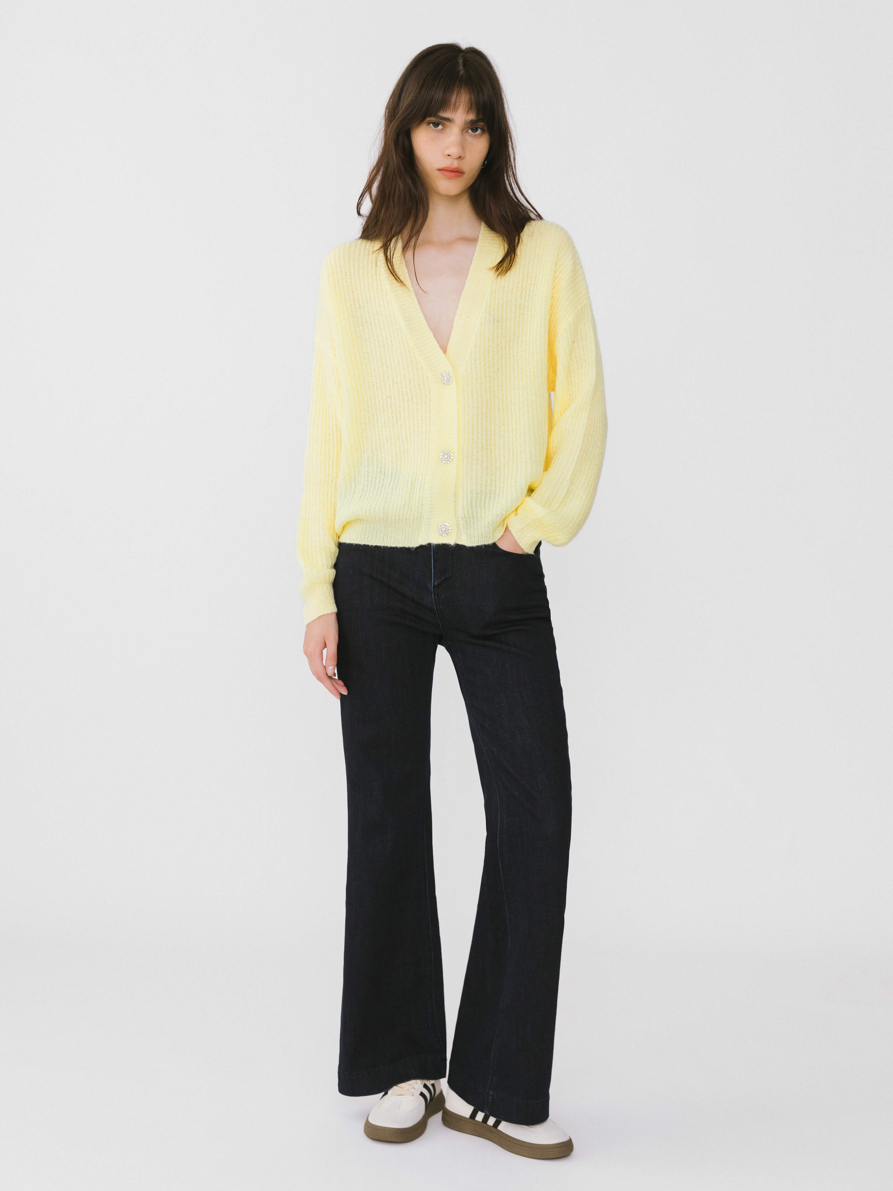 -70%Casual V-Neck Ribbed Knit Cardigan with Wool Blend—