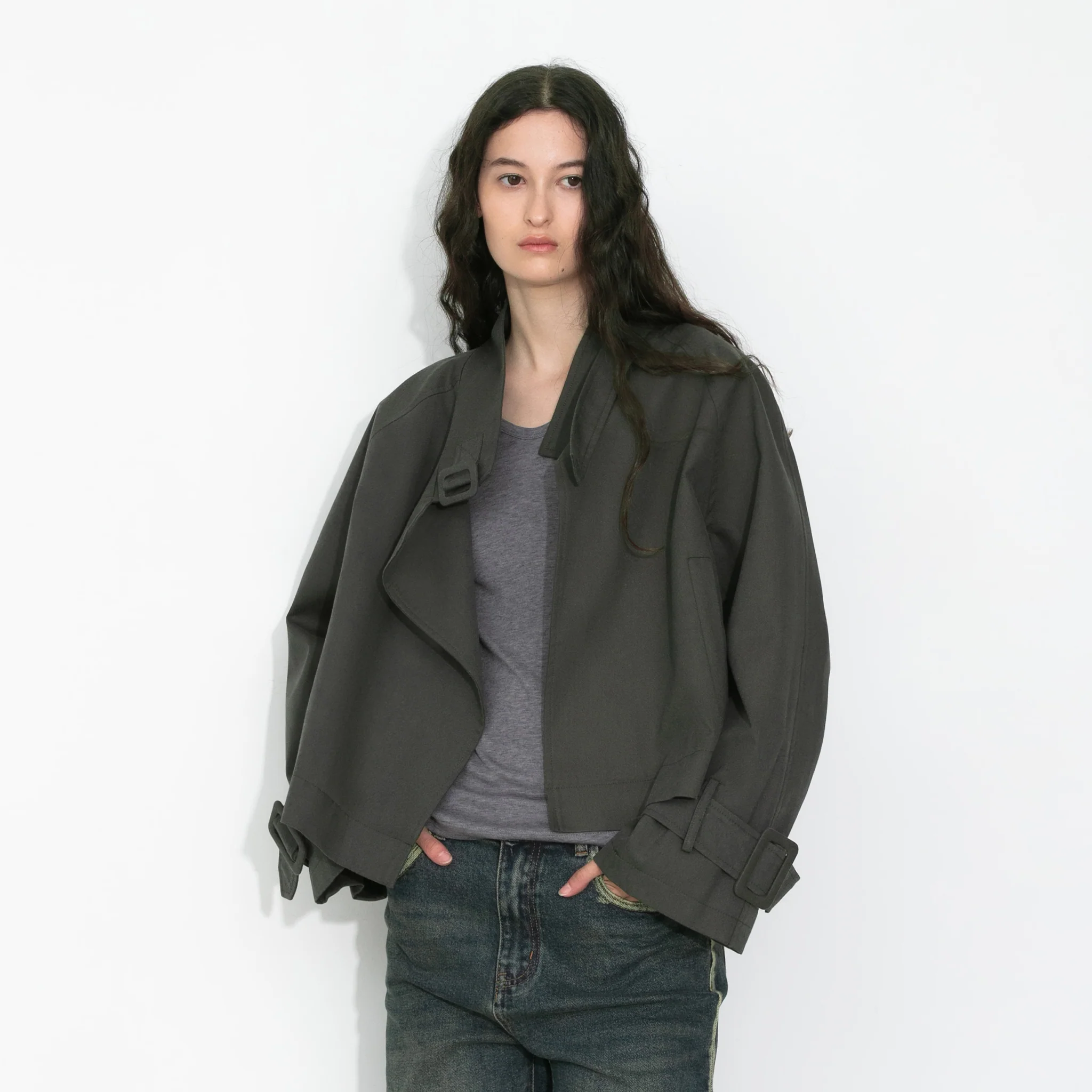 -70%Overlay Cropped Trench Coat—