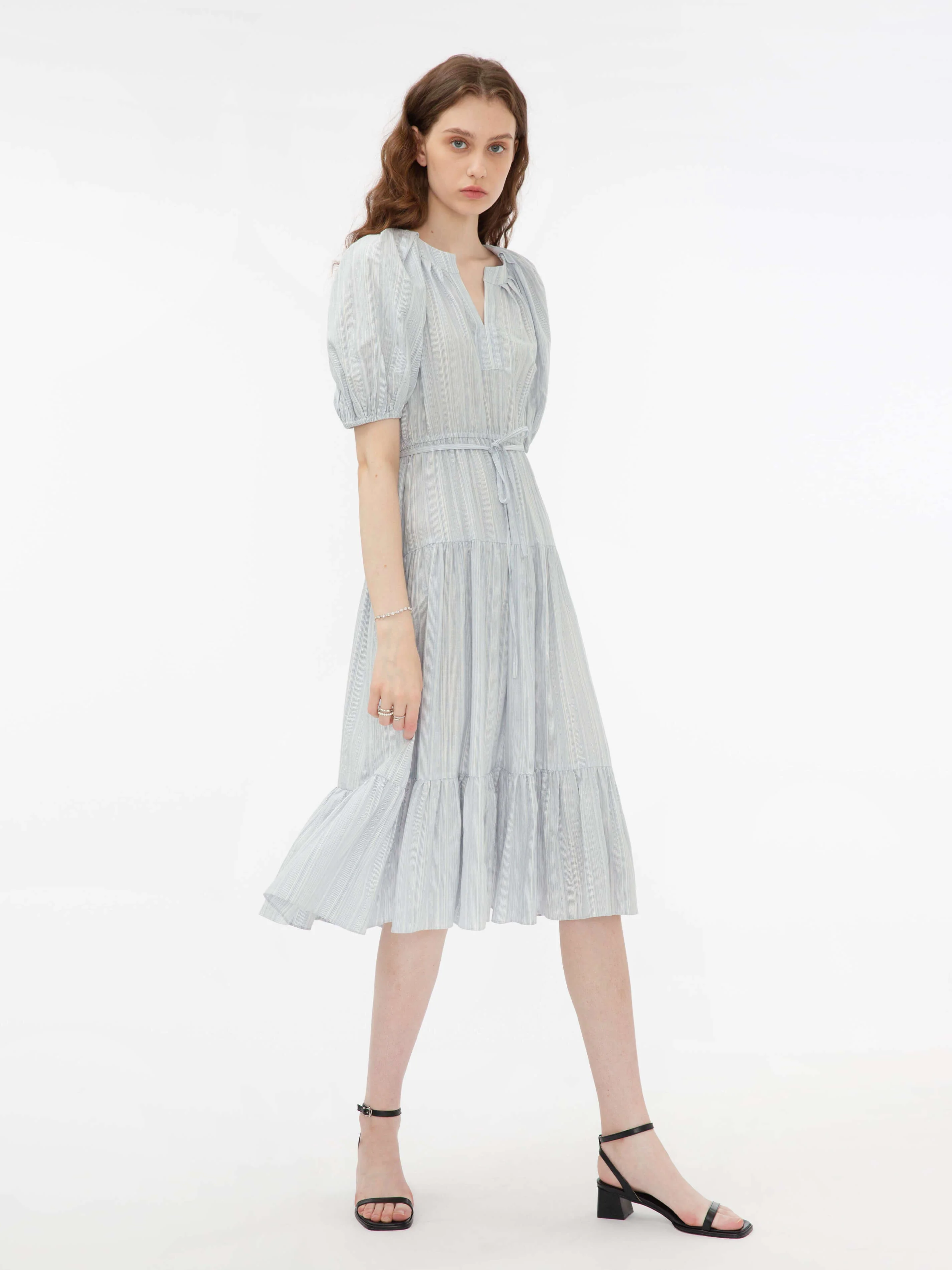 -70%Puff Sleeve V-Neck Tiered Dress—
