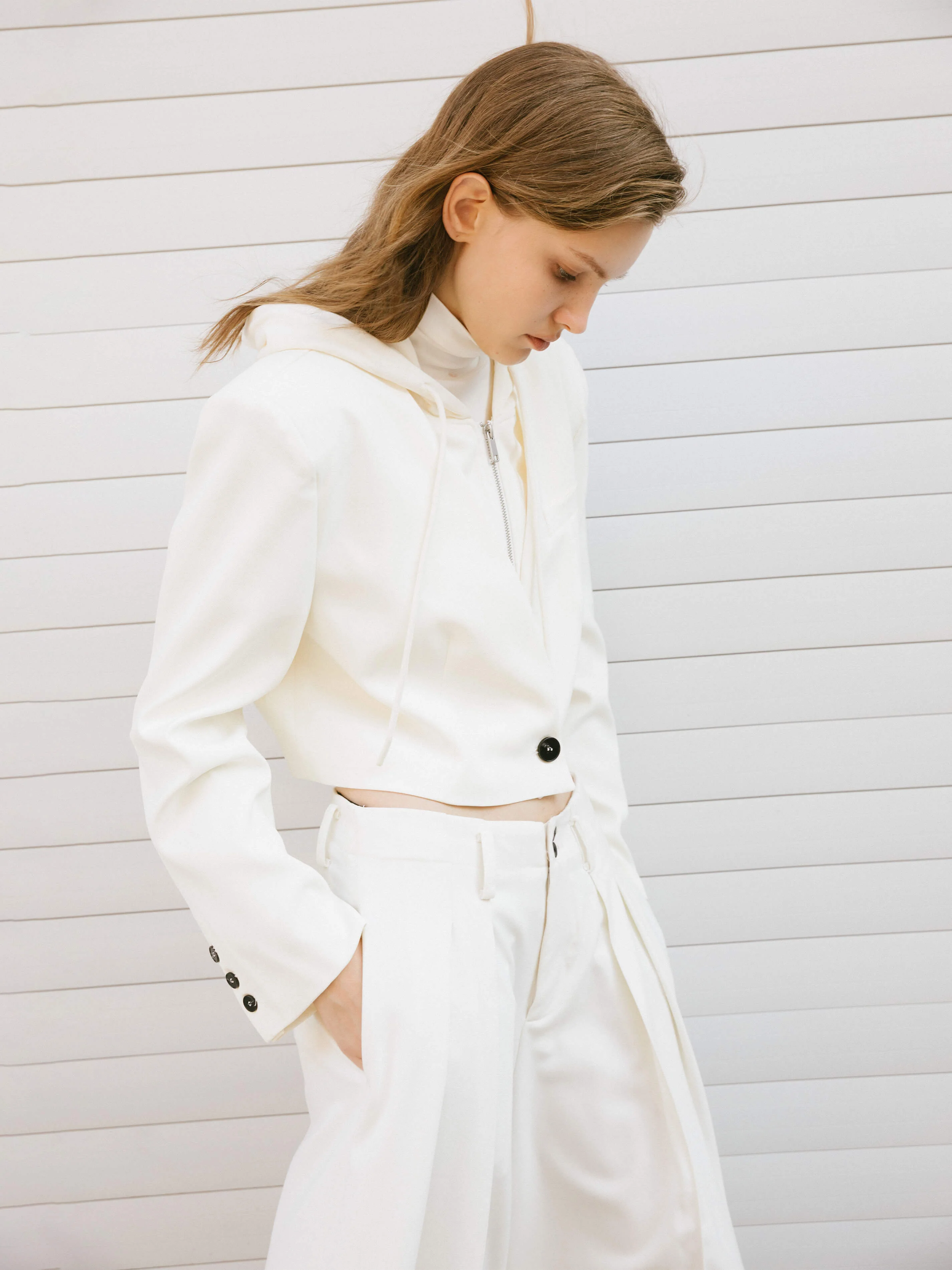 Single Breasted Cropped Blazer with Attached Hoodie