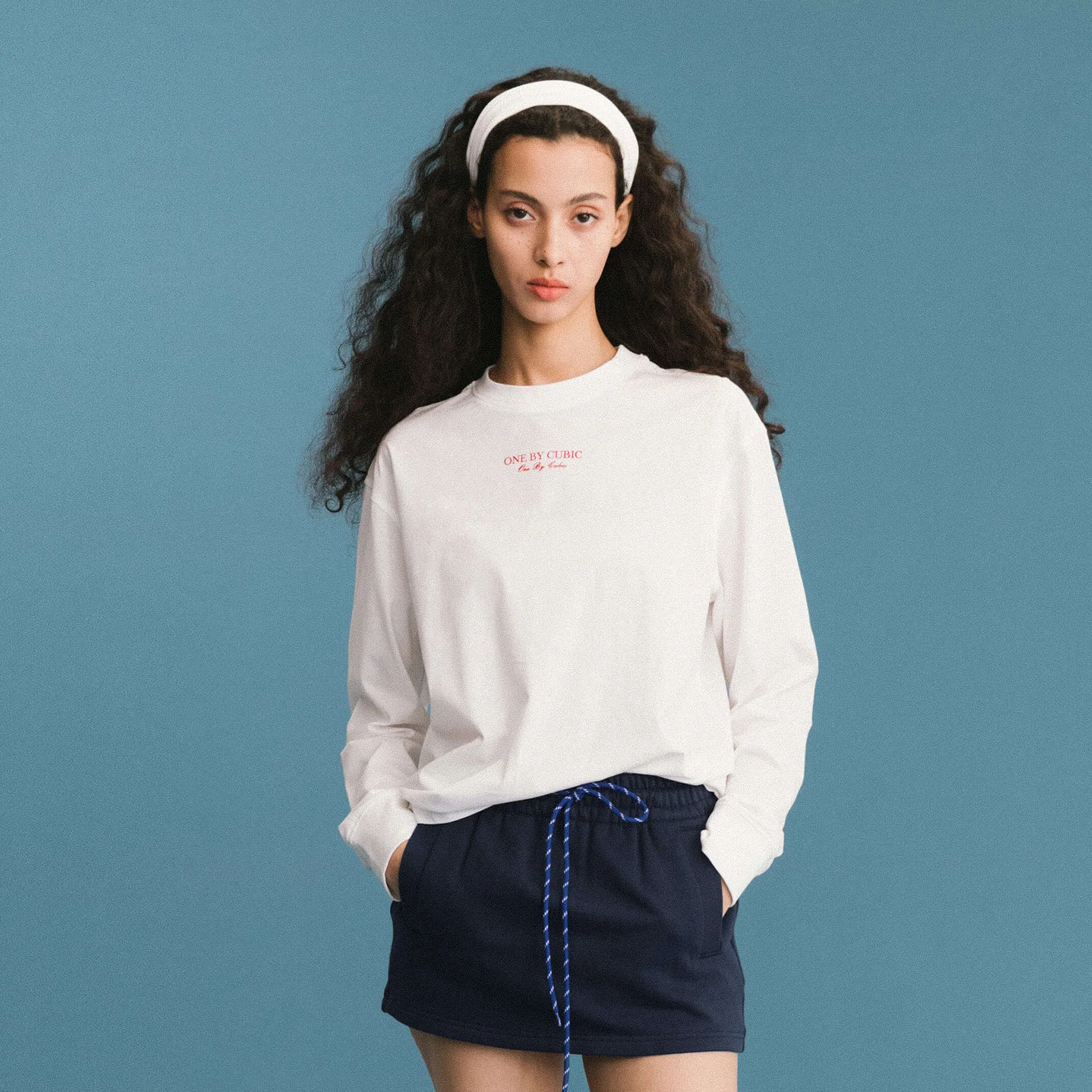 Sweatshirt in white from ONE BY CUBIC collection. Oversized model and crew neck. Long sleeves with dropped shoulder. Front printed design. The fabric composition is 63.9% Cotton 36.1% Polyester. Model wears size UN, which is suitable for UK size 8-12. Product Code: TOBDT2202